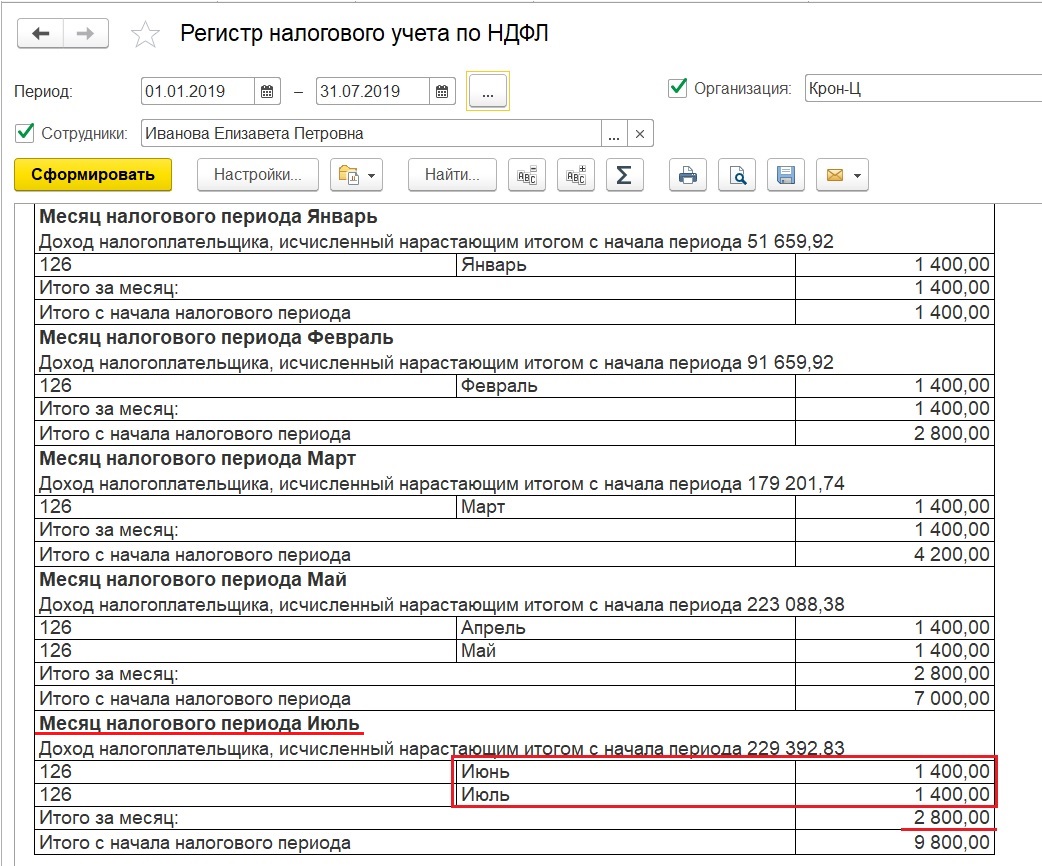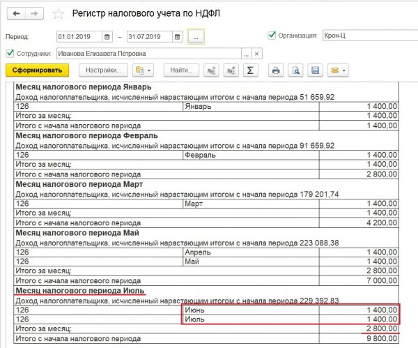 Это же мы увидим и в регистре налогового учета по НДФЛ.